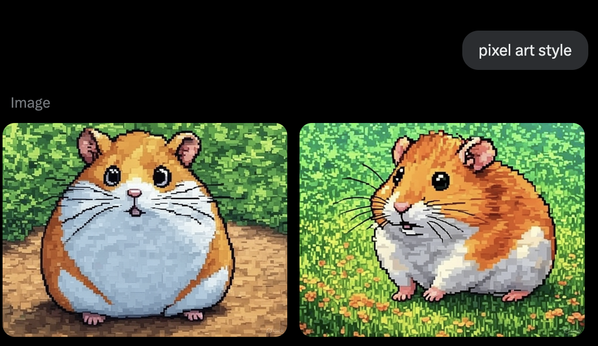 AI 첫걸음픽셀아트 이미지 생성하기 chatGPT vs Grok정정밀한 문서 애호가픽셀아트 스타일의 그림을 좋아해서 이미지 생성 모델에게 꼭 한번씩은 요청하는데요, chatGPT와 Grok의 생성 결과가 모두 맘에 들어서 공유합니다! 지피티는 게임보이같은 그래픽으로 구현해 주었어요. 그록은? 영어를 선호하는 편(?) 이네요 😅 그래도 정말 귀엽게 그려주지 않나요? 무료로 이미지를 생성하고 싶다면 Grok도 추천합니다!