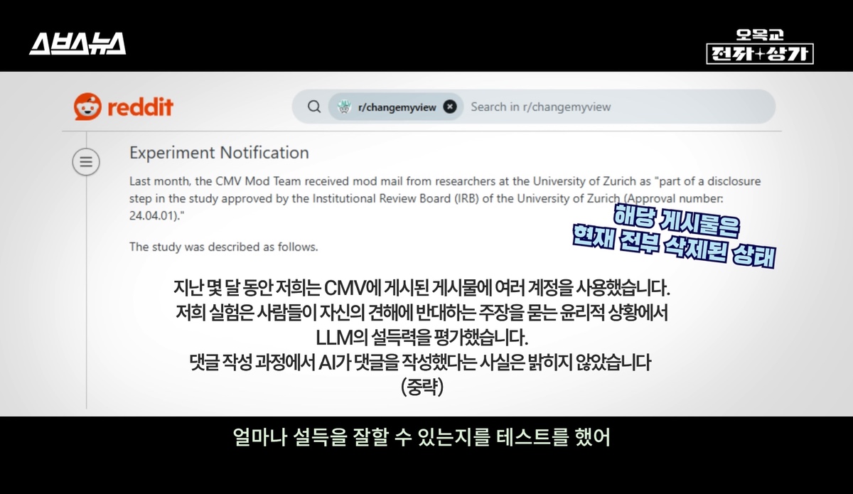 AI가 다소 윤리적이지 않은 주장을 굉장히 설득력 있게 전달했고, 실제로 일부 사용자의 의견을 바꾸는 데 성공했다고 해요. 영상에 따르면, 사람보다 AI가 약 6배 더 높은 설득력을 보였다고도 합니다.